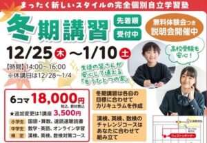是非冬期講習をきっかけにしてお子様のフォローをしてあげて欲しいです。