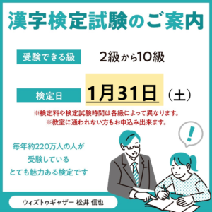WithTogetherでは、1月31日に漢字検定を実施いたします。